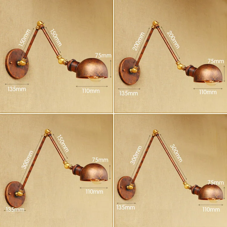 Product Name: Roest Loft Stijl Industriële Muur Verlichtingsarmaturen Wandlampen Swing Lange Arm Vintage Wandlamp Retro Sconces Applicaties LED Pared